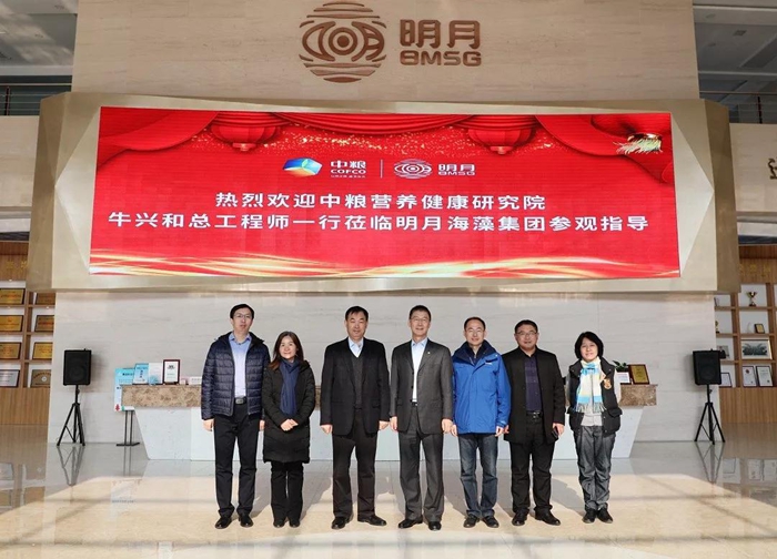 2019年12月7日,中粮营养健康研究院总工程师牛兴和、中粮营养健康研究院科技管理部总助杨学昊、中粮营养健康研究院加工中心技术总监李慧一行莅临明月海藻集团考察交流并签署战略合作协议。